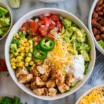 - Assemble Bowls: Divide cilantro lime rice among 4 bowls. Top each with cooked chicken, seasoned beans, sliced or diced avocado, queso or shredded cheese, your choice of salsa, and additional toppings like pickled red onion, diced tomatoes, jalapenos, or sour cream.
