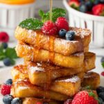 These Baked French Toast Sticks offer a deliciously crispy yet tender twist on classic French toast, perfect for dipping in warm maple syrup. Coated in a cinnamon-sugar mixture and baked until golden, these sticks are an easy and family-friendly breakfast or snack option that requires no frying.