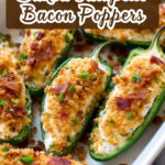 Bake the poppers for about 14 to 18 minutes in your preheated oven. You’re looking for tender jalapenos with melted, bubbly cheese and golden breadcrumbs on top. When it’s done and smells irresistible, take them out and sprinkle the remaining chopped bacon and green onions over the top. Serve warm and watch them vanish!