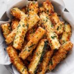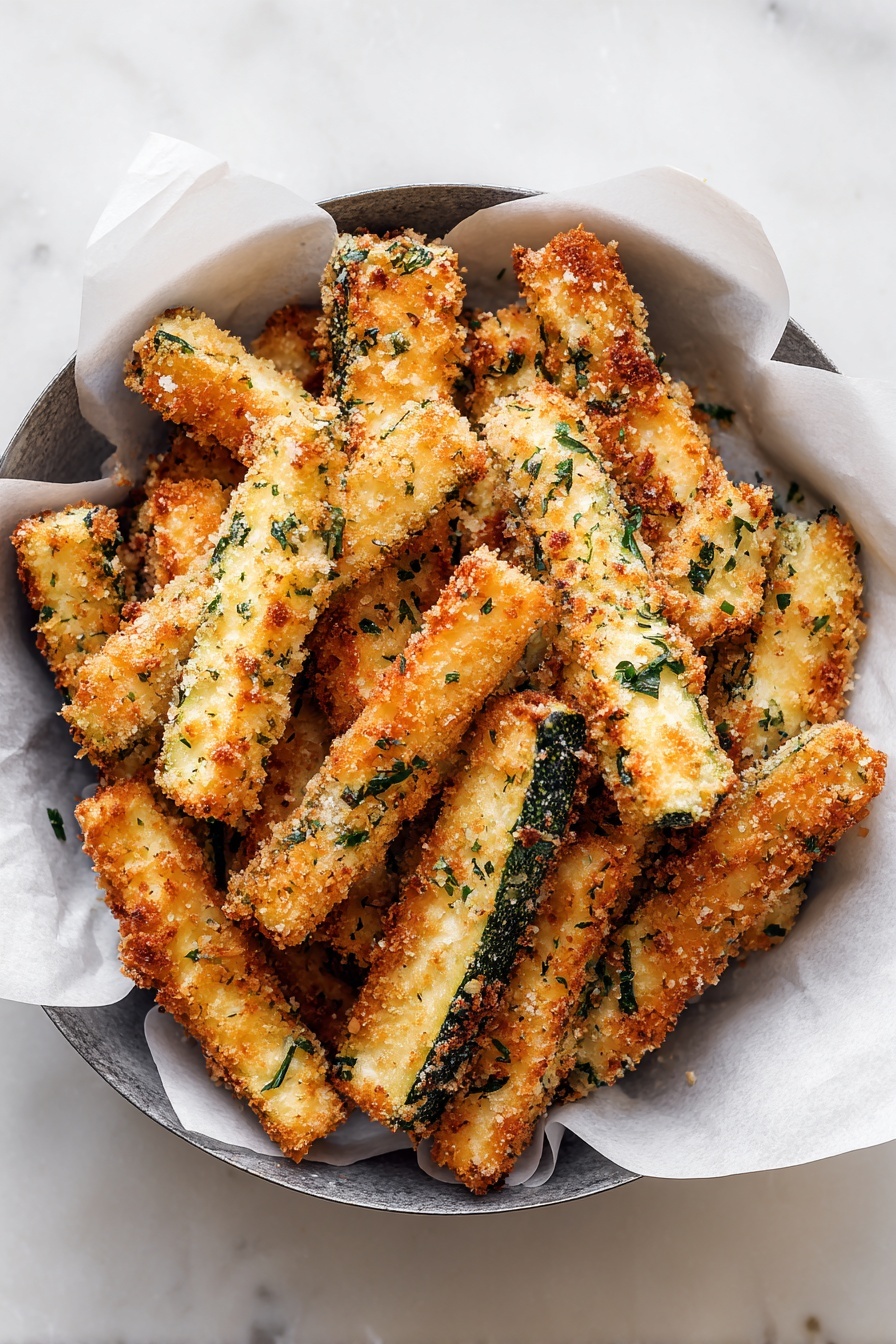Crispy and flavorful baked zucchini fries coated with a crunchy panko and parmesan crust, seasoned with Italian herbs and garlic powder. A healthy and delicious appetizer or side dish perfect for snacking or complementing your meals.