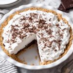 - Add topping and garnish: Spread the whipped topping evenly over the chilled pie and garnish with chocolate curls or mini chocolate chips if desired.