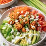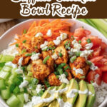 This Buffalo Chicken Bowls recipe offers a delicious and flavorful meal featuring tender buffalo sauce-coated chicken served over rice with fresh vegetables and blue cheese, finished with a drizzle of ranch dressing. Perfect for a quick and satisfying lunch or dinner with a spicy kick.