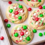 These Christmas Cake Mix Cookies are a festive and fun twist on traditional cookies, made easily with a white cake mix combined with colorful red and green M&Ms and white chocolate chips, resulting in a soft, sweet, and colorful holiday treat perfect for any Christmas celebration.