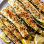 Roasted Parmesan Garlic Zucchini Spears offer a flavorful and healthy side dish featuring tender zucchini spears tossed in a zesty lemon garlic blend, sprinkled with Parmesan cheese, and roasted to golden perfection. Ideal for a quick, easy, and delicious complement to any meal.