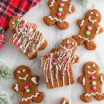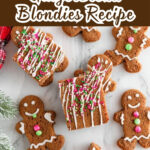These Gingerbread Blondies are a festive twist on classic blondies, infused with warm gingerbread spices like ginger, cinnamon, nutmeg, and molasses. Topped with optional melted white chocolate and colorful sprinkles, they make a perfect holiday treat that’s tender, fudgy, and deliciously spiced. Decorate them further with fun gingerbread man and woman designs using melted chocolate for a charming seasonal dessert.