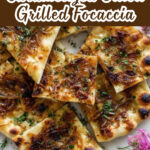 Remove the grilled focaccia and immediately brush with that fragrant garlic butter, then sprinkle generously with your fresh herbs and flaked sea salt. Top with the luscious caramelized onions and slice. I enjoy serving this warm, with the softness still intact and the sweet-savory onions just oozing with flavor. It’s pure bliss.