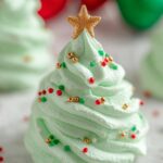 Delightful Meringue Christmas Trees are light, airy, and festive treats perfect for holiday celebrations. Made with whipped egg whites, sugar, and a touch of vanilla, these green-tinted meringue swirls shaped into Christmas trees are decorated with sprinkles to resemble ornaments and stars, making a charming and elegant dessert or snack.