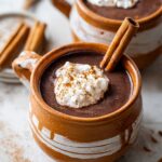I’m a huge fan of topping my Mexican hot chocolate with whipped cream and a sprinkle of cinnamon or cocoa powder. Sometimes I add mini marshmallows or a cinnamon stick for stirring — it makes the experience feel a little festive and extra cozy, especially on cold nights.