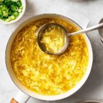 This classic Egg Drop Soup recipe is a simple, comforting, and silky soup made with chicken broth, ginger, and delicate ribbons of cooked egg. It’s thickened slightly with cornstarch and seasoned with toasted sesame oil, tamari, and a hint of turmeric for color. Ready in just 15 minutes, it’s perfect as a light appetizer or a quick weeknight meal.