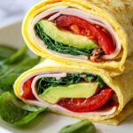 - Assemble Wrap: Remove the egg wrap from heat. Layer the deli turkey slices, tomato slices, avocado slices, and fresh spinach evenly over one half of the egg wrap.