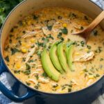 This White Chicken Chili recipe is a flavorful and creamy twist on traditional chili, featuring tender shredded chicken, cannellini beans, mild green chilies, and a blend of warming spices. Enriched with Neufchatel cheese for a smooth texture and enhanced with fresh lime juice and cilantro, this comforting dish is perfect for a cozy dinner. Serve it topped with Monterey Jack cheese, avocado slices, and crunchy tortilla chips for added texture and flavor.